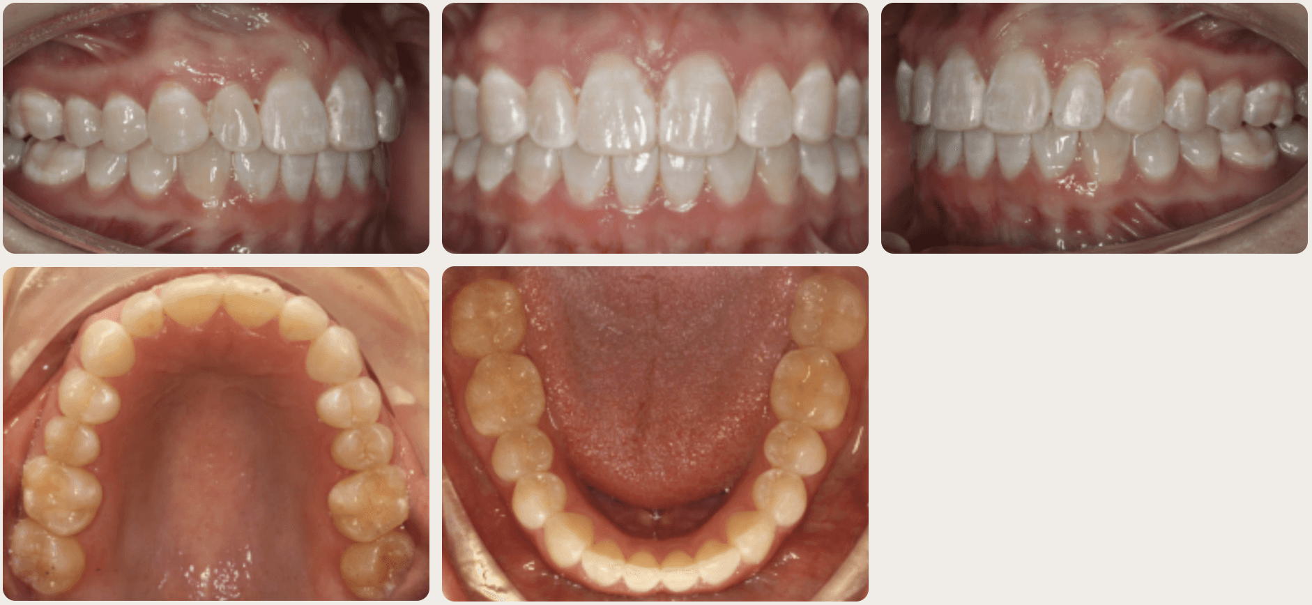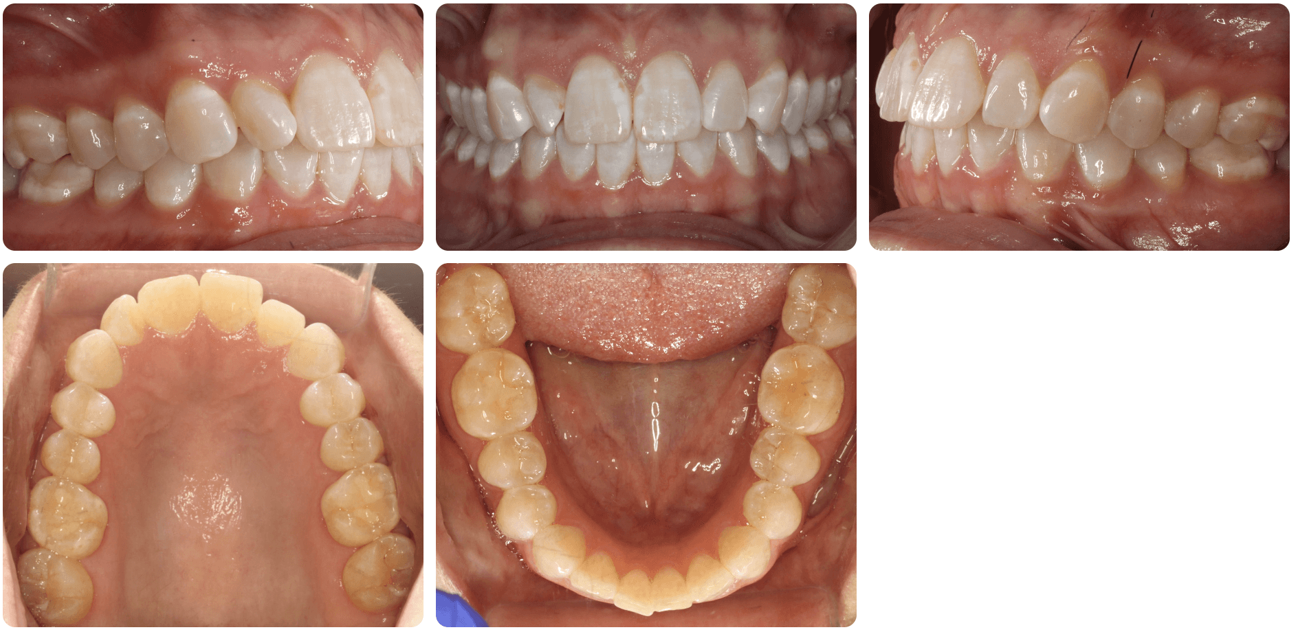 Diagnosis: Deep bite, lower anterior crowding, rotated upper lateral, arch misalignment, wear on teeth from grinding