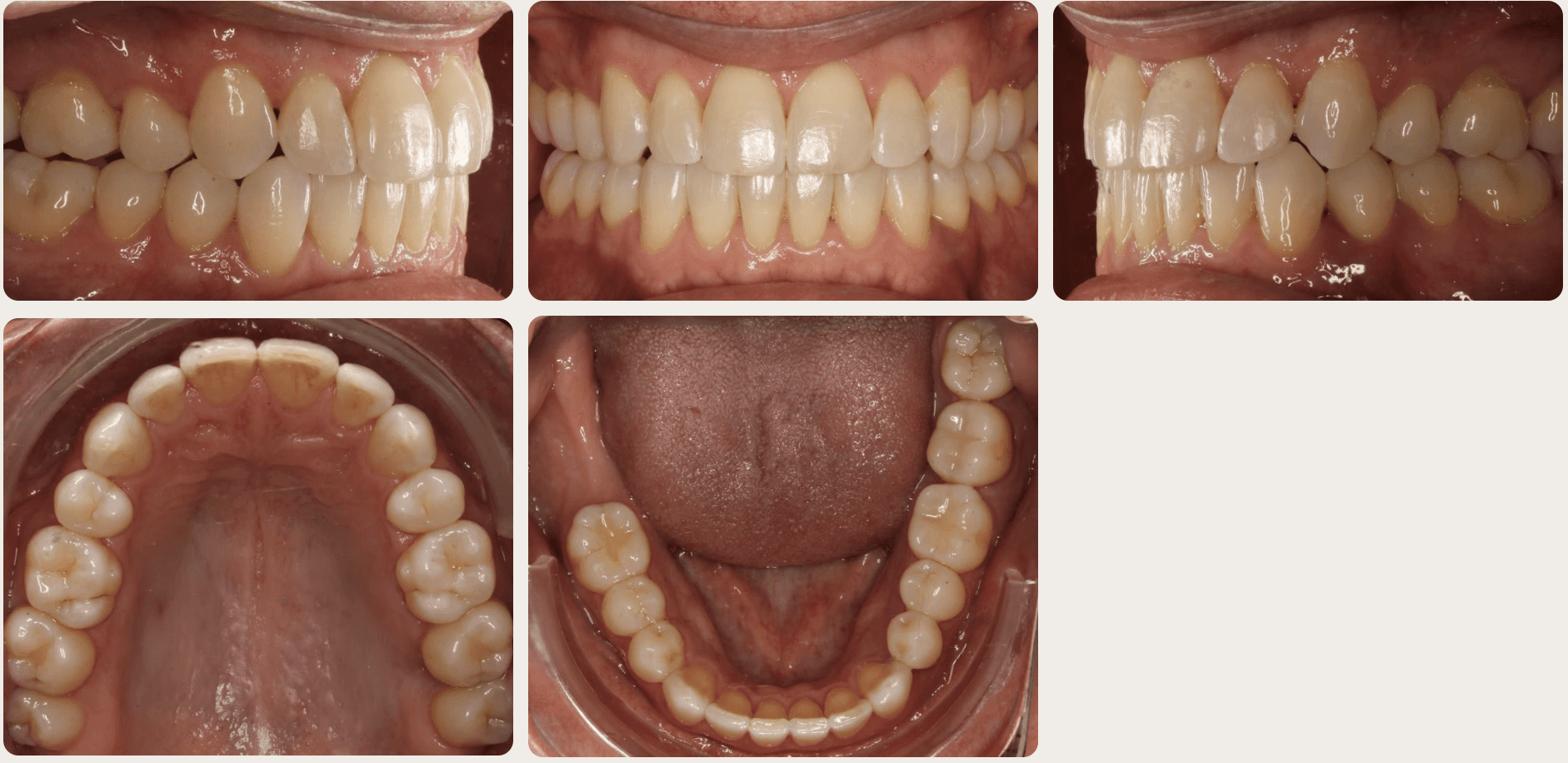 Diagnosis: Minor and moderate crowding, anterior open bite, reverse smile arc, narrow maxilla, crossbite, tapered arch form